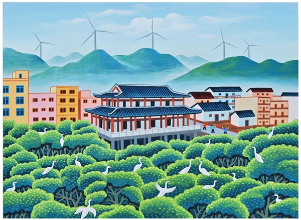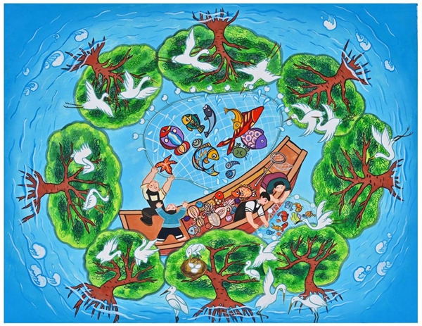 此次展览由惠州学院美术与设计学院主办,广东省哲学社会科学普及基地(龙门农民画)、广东省美育名师李帆工作室承办。展览采用“农民画 + 生态科普”的形式,将乡土艺术与海洋绿色理念相融合。通过质朴、生动且饱含情感的艺术语言,唤起了公众对红树林生态保护的关注与共鸣。这不仅是对生态文明建设的艺术回应,更是地方文化活化、高校社会服务与环境教育协同发展的生动体现。
