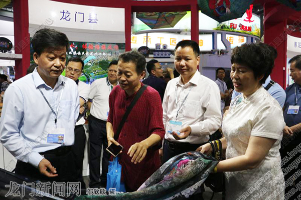 在展会现场,大批参展的观众以及客商驻足龙门展区前,翻看龙门本届文博会的招商手册。独特的龙门农民画艺术风情、革命色彩浓厚的红色旅游文化、原生态的田园风光、丰富的温泉资源给观众以及客商留下深刻的印象,让他们感受到龙门良好的投资环境和广阔的发展前景。