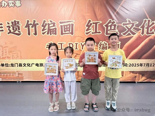 为进行爱国主义教育,让学生感受非遗文化魅力,7月12日和13日,龙门县博物馆举办了“非遗竹编画 红色文化行”手工活动。活动吸引60名学生参加,将非遗技艺与红色文化相融,为学生带来一场别开生面的沉浸式学习体验。